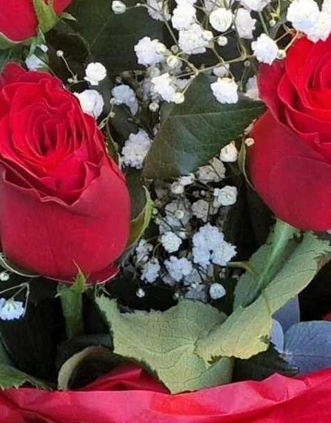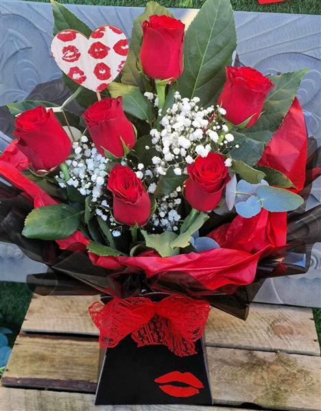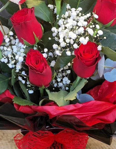 ❤️6 luxury long stemmed red roses with gyp and mixed greenery ❤️