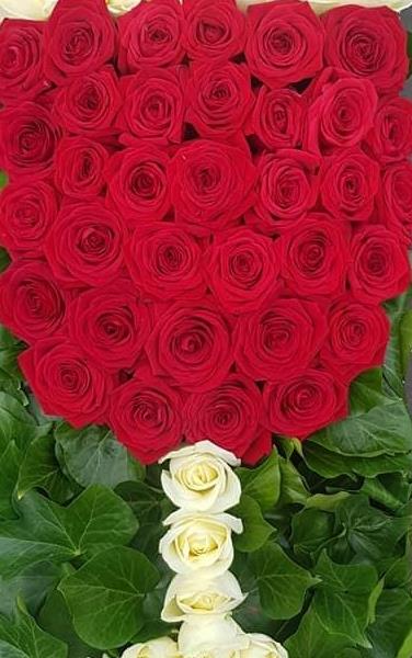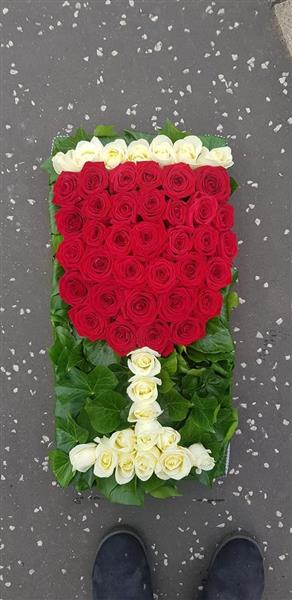 Bespoke wine glass tribute made from the finest red Naomi roses and cream avalanche roses