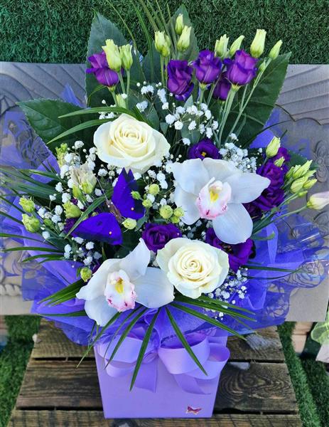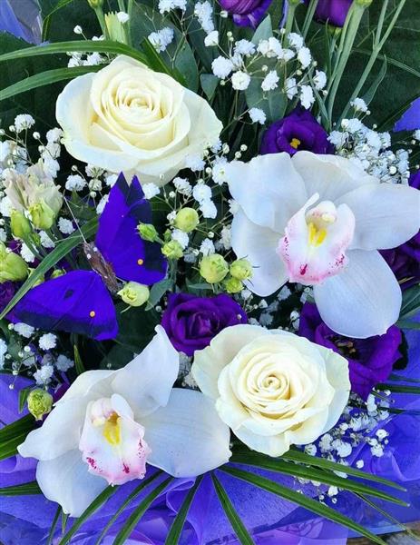 💜Gorgeous purple lizzy,cream sparkling roses and purple Vanda Orchids 💜