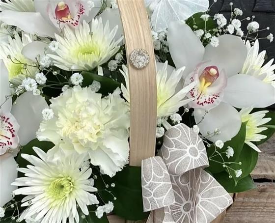 🌸Crisp whites basket includes orchids,carnations and chrysanthemums 🌸