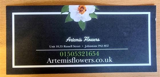 Artemis Flowers - Unit 10, 35 Russell Street, Johnstone, PA5 8EZ - Tel: 01505321654