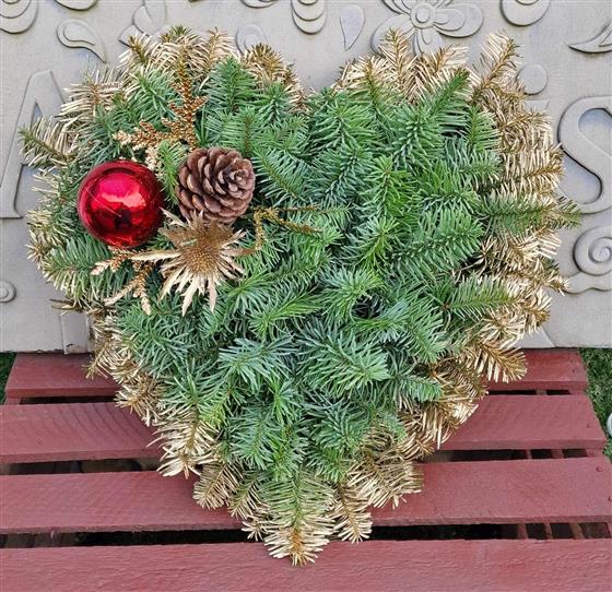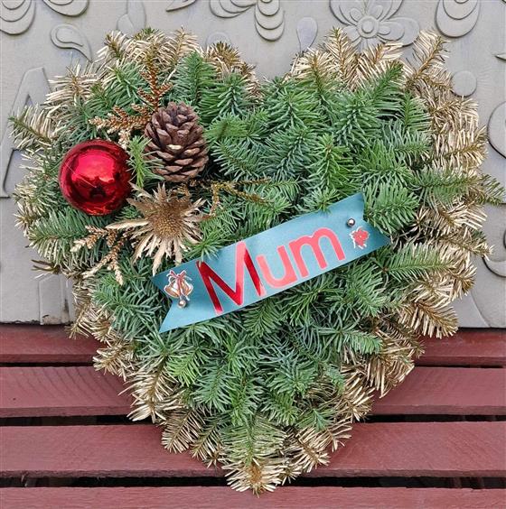Stunning Christmas greens heart with golden edges with your choice of ribbon name/names