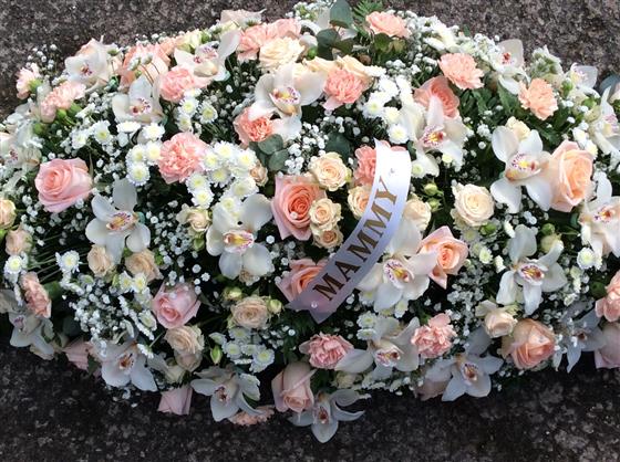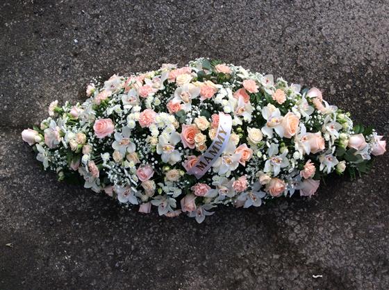 🌸Peaches and cream double ended casket spray available in 3ft(91cm),4ft(121cm)(picture shown),5ft(152cm) or 6ft(182cm) sprays🌸
