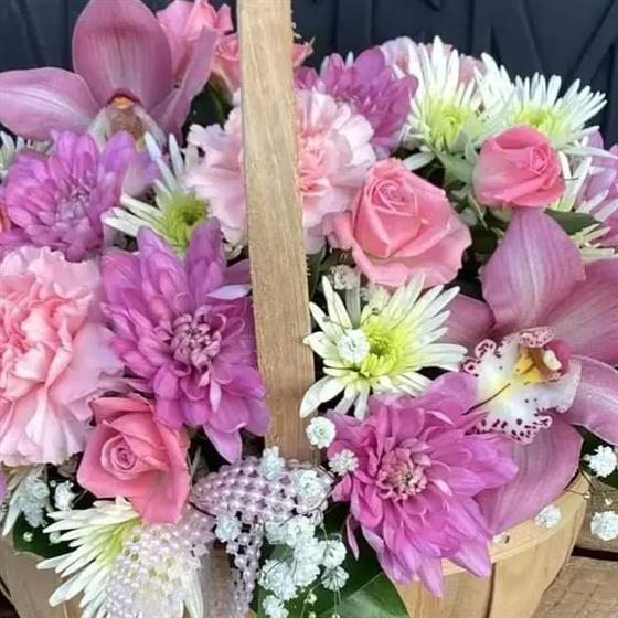 🌸perfect pinks basket includes orchids,carnations and chrysanthemums 🌸